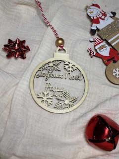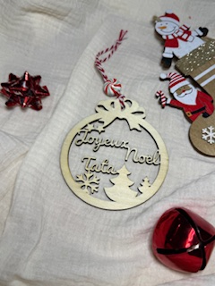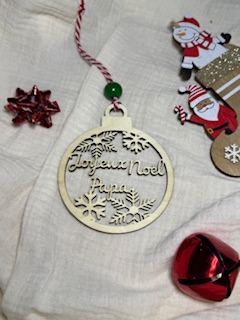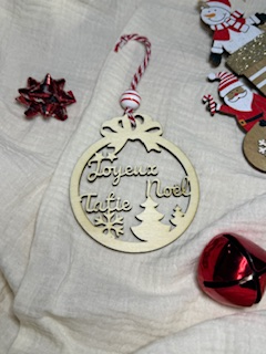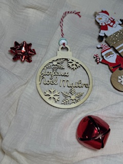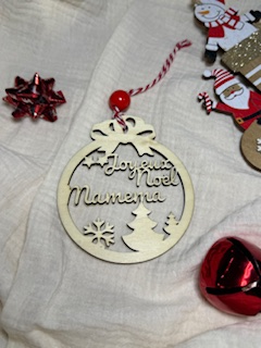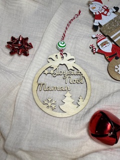Découvrez nos magnifiques boules en bois gravées avec l'inscription 'Joyeux Noël'. Ces boules sont déjà personnalisées avec des prénoms tels que Tatie, Mamie, Maîtresse, et bien d'autres, ce qui en fait un choix parfait pour apporter une touche unique et pleine de tendresse à votre sapin de Noël.