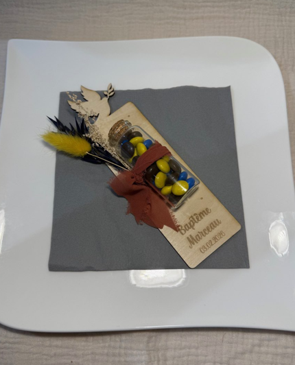Chaque produit est conçu pour allier esthétique, authenticité et personnalisation. Des contenants à dragées aux marque-places, en passant par les petits cadeaux invités, les menus et les numéros de table, chaque détail contribue à créer une ambiance harmonieuse et soignée.